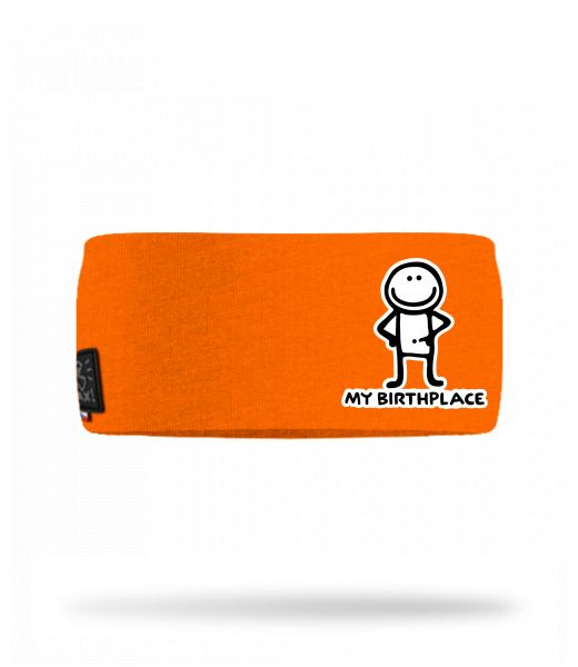Cotton sports headband for man with design 1069 MY BIRTHPLACE in color SIGNAL ORANGE