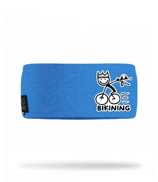 Cotton sports headband for man with design 1080 BIKINING in color CAPRI BLUE