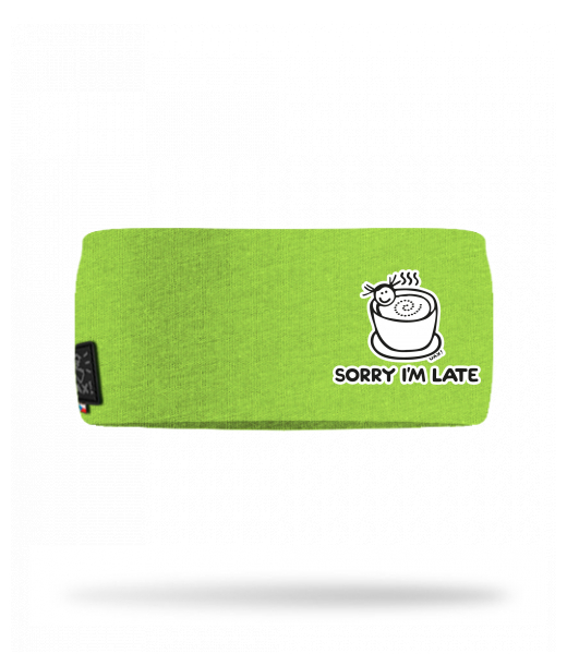Cotton sports headband for man with design 1087 SORRY IM LATE in color PARROT GREEN