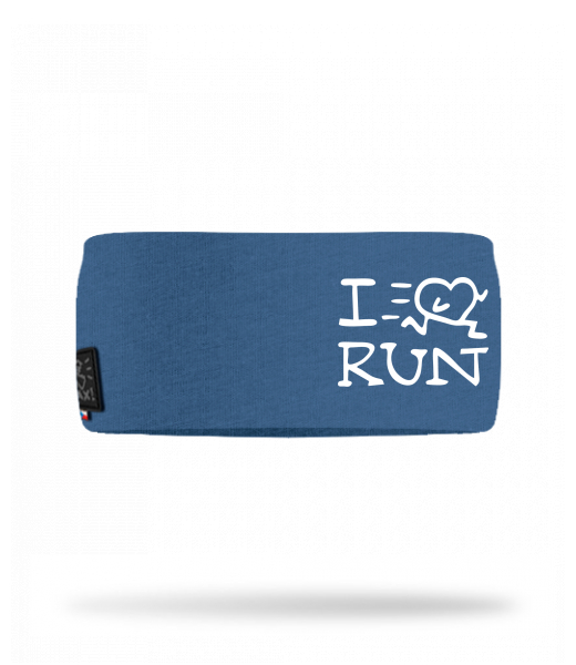 Cotton sports headband for man with design 1088 I LOVE RUN in color MOONLIGHT BLUE