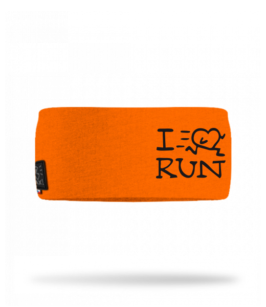 Cotton sports headband for man with design 1088 I LOVE RUN in color SIGNAL ORANGE