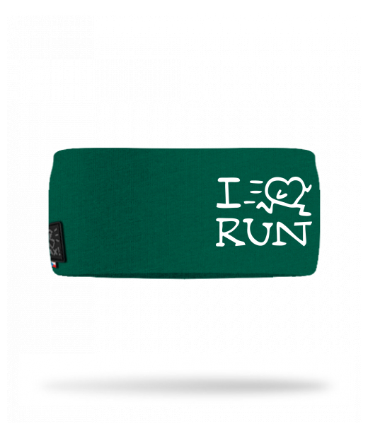 Cotton sports headband for man with design 1088 I LOVE RUN in color UNIVERSITY GREEN