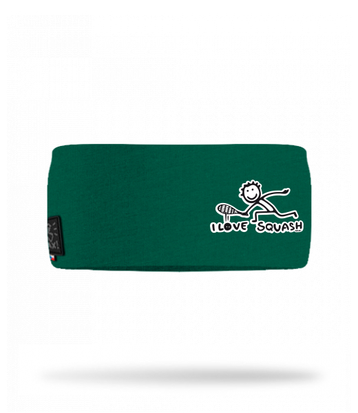 Cotton sports headband for man with design 1091 I LOVE SQUASH in color UNIVERSITY GREEN
