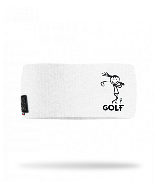 Cotton sports headband for man with design 1092 GOLF in color WHITE