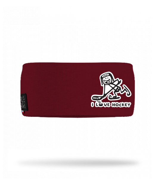 We make sustainable UAX clothing! - hand sewn in the Czech Republic uaxMen uaxAll productsHats and HeadbandsCOTTON SPORTS HEADBANDdesign 1100 - I LOVE HOCKEYDARK RED