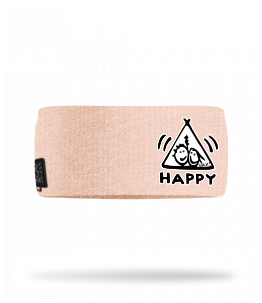 Cotton sports headband for man with design 1113 HAPPY in color CAPPUCINO
