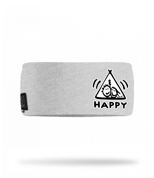 Cotton sports headband for man with design 1113 HAPPY in color CEMENT