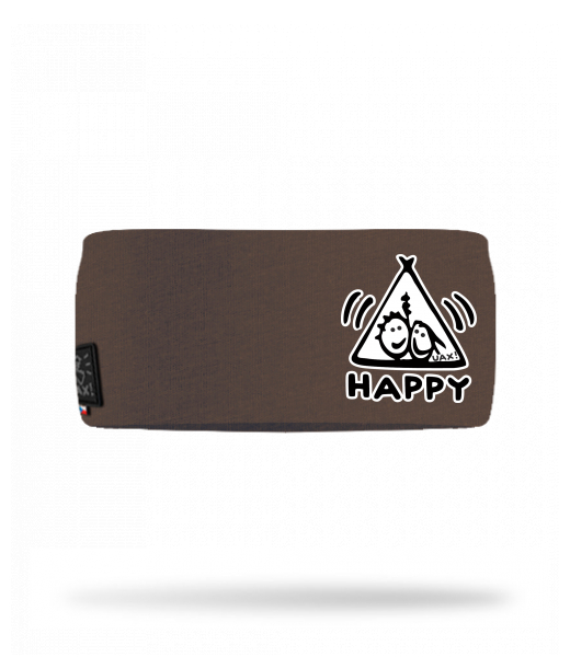 Cotton sports headband for man with design 1113 HAPPY in color CHESTNUT