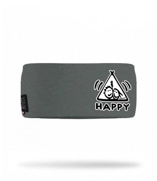 Cotton sports headband for man with design 1113 HAPPY in color DARK GRAY