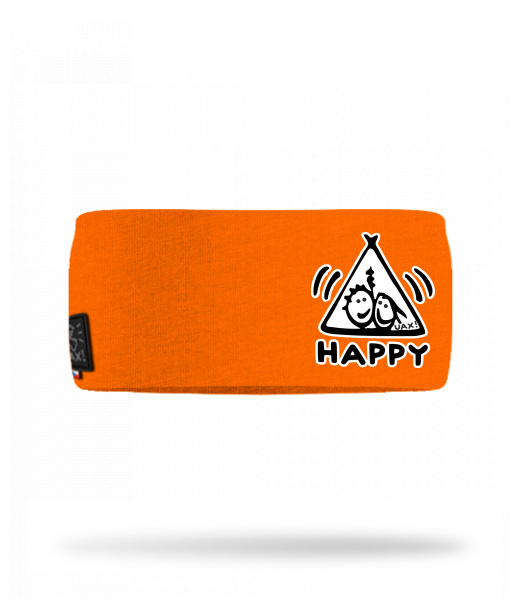 Cotton sports headband for man with design 1113 HAPPY in color SIGNAL ORANGE