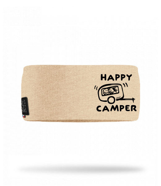 Cotton sports headband for man with design 1116 HAPPY CAMPER in color CARAMEL