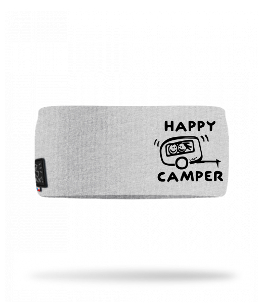 Cotton sports headband for man with design 1116 HAPPY CAMPER in color CEMENT