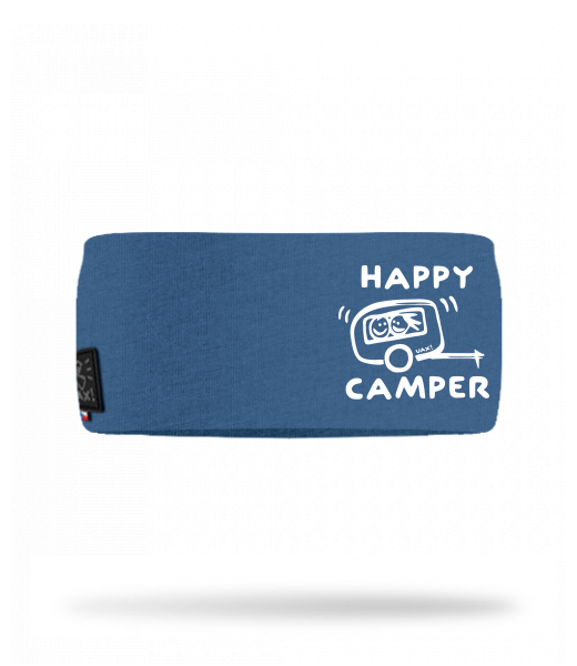 Cotton sports headband for man with design 1116 HAPPY CAMPER in color MOONLIGHT BLUE