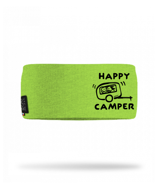 Cotton sports headband for man with design 1116 HAPPY CAMPER in color PARROT GREEN