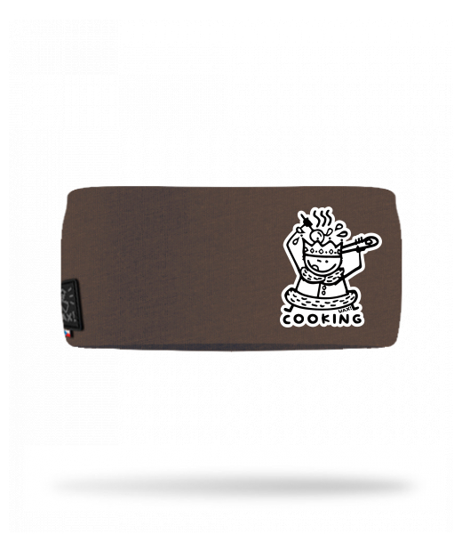 Cotton sports headband for man with design 1117 COOKING in color CHESTNUT