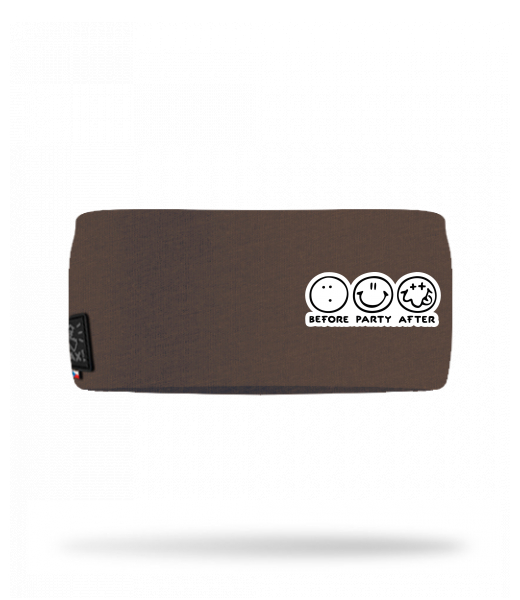 Cotton sports headband for man with design 1120 BEFORE PARTY AFTER in color CHESTNUT
