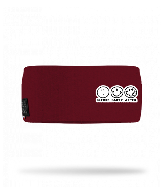 Cotton sports headband for man with design 1120 BEFORE PARTY AFTER in color DARK RED