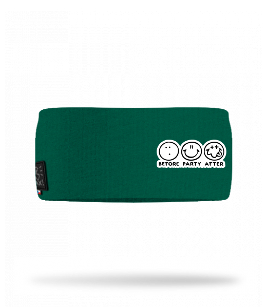 Cotton sports headband for man with design 1120 BEFORE PARTY AFTER in color UNIVERSITY GREEN