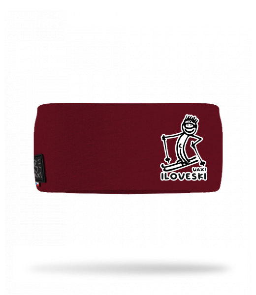 Cotton sports headband for man with design 1122 I LOVE SKI in color DARK RED