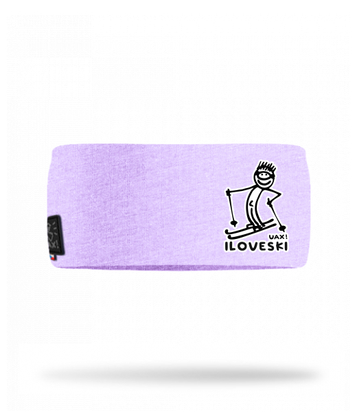 Cotton sports headband for man with design 1122 I LOVE SKI in color LAVENDER