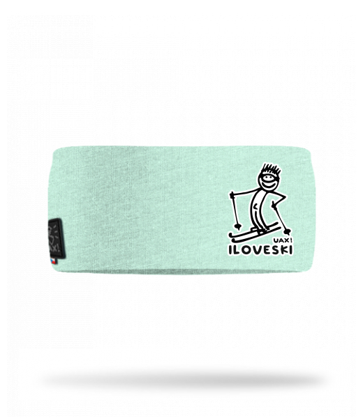 Cotton sports headband for man with design 1122 I LOVE SKI in color MINT