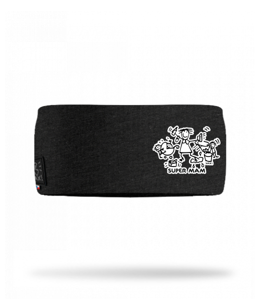 Cotton sports headband for man with design 1126 SUPER MAM in color BLACK