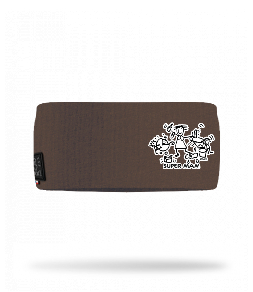 Cotton sports headband for man with design 1126 SUPER MAM in color CHESTNUT