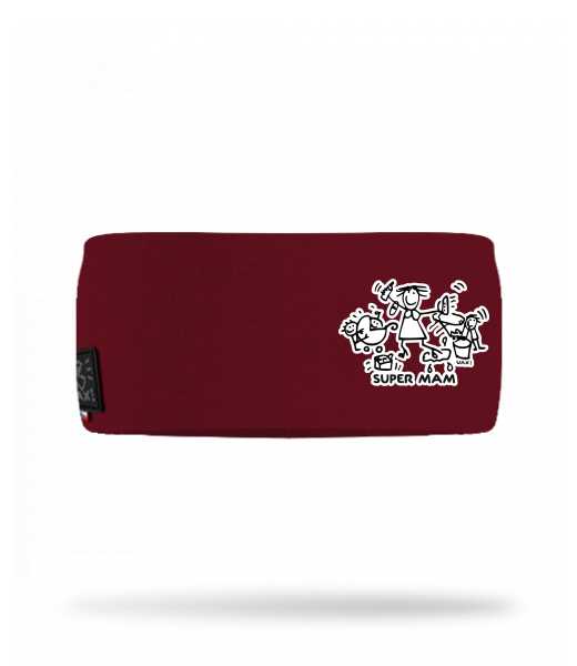 Cotton sports headband for man with design 1126 SUPER MAM in color DARK RED