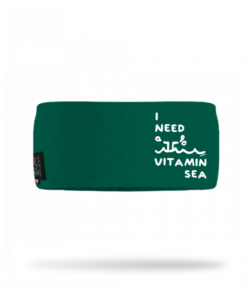 Cotton sports headband for man with design 1132 I NEED VITAMIN SEA in color UNIVERSITY GREEN
