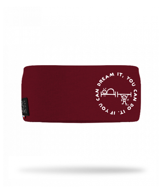 Cotton sports headband for man with design 1133 IF YOU CAN DREAM IT in color DARK RED