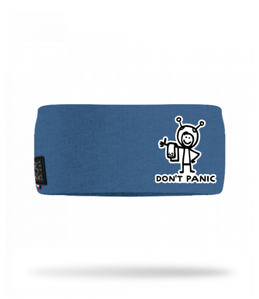 Cotton sports headband for man with design 1157 DON'T PANIC in color MOONLIGHT BLUE