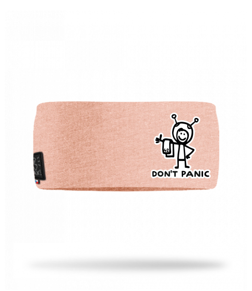 Cotton sports headband for man with design 1157 DON'T PANIC in color PEACH