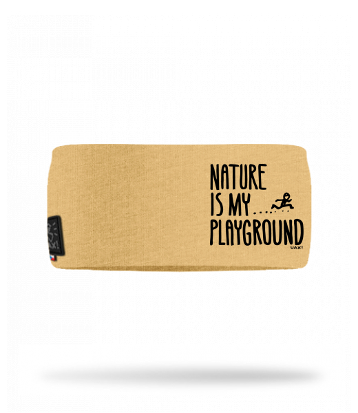 Cotton sports headband for man with design 1160 NATURE IS MY PLAYGROUND in color MUSTARD