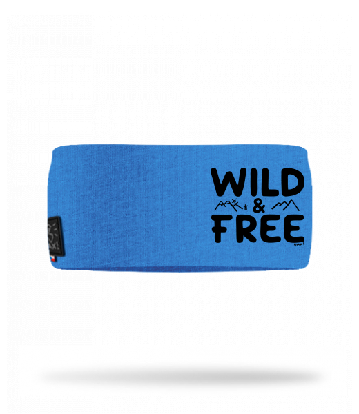Cotton sports headband for man with design 1161 WILD AND FREE in color CAPRI BLUE