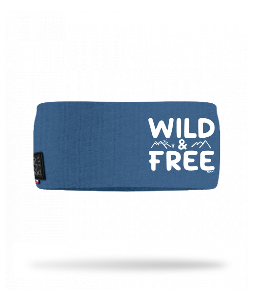 Cotton sports headband for man with design 1161 WILD AND FREE in color MOONLIGHT BLUE