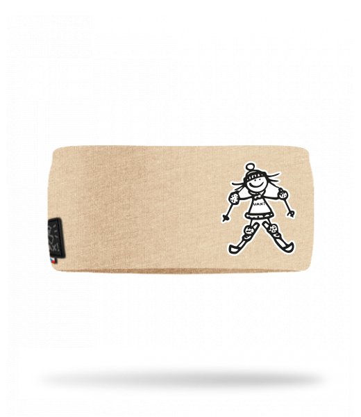 Cotton sports headband for man with design 1179 SKIER GIRL in color CARAMEL