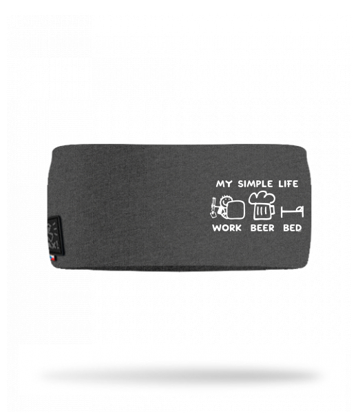 Cotton sports headband for man with design 1211 MY SIMPLE LIFE WORK BEER BED in color GRAFIT