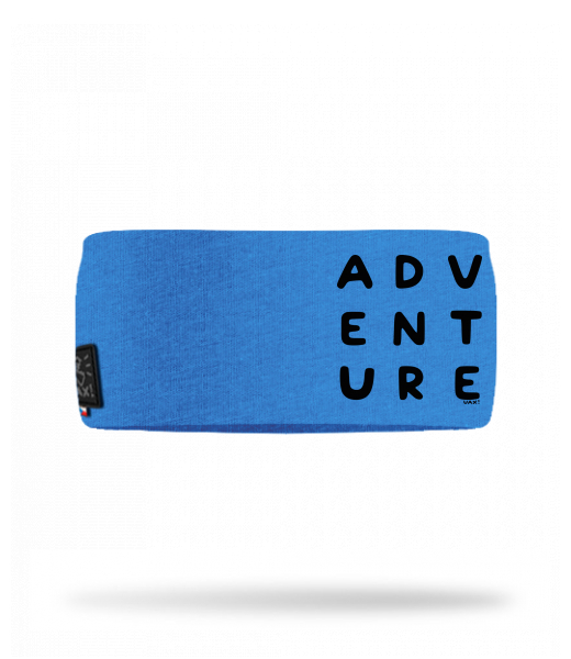 Cotton sports headband for man with design 1270 ADVENTURE in color CAPRI BLUE