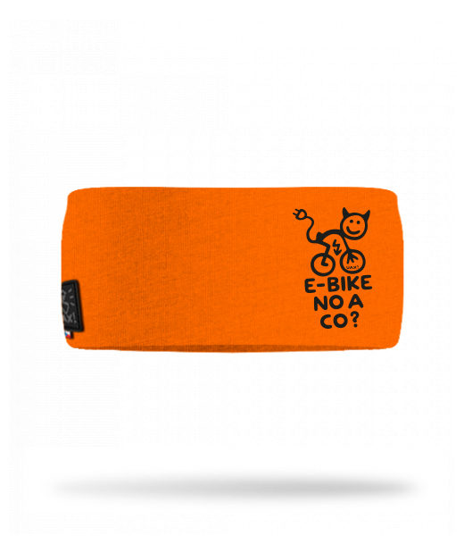 Cotton sports headband for man with design 1291 E-BIKE NO A CO? in color SIGNAL ORANGE