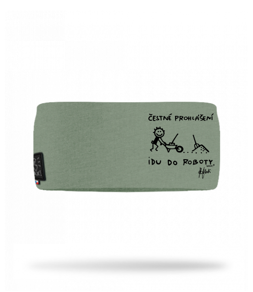 Cotton sports headband for man with design 1303 ČESTNÉ PROHLÁŠENÍ IDU DO ROBOTY in color OLIVA