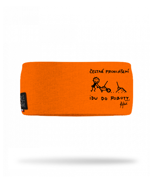 Cotton sports headband for man with design 1303 ČESTNÉ PROHLÁŠENÍ IDU DO ROBOTY in color SIGNAL ORANGE