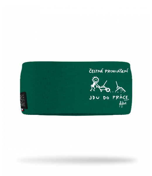 Cotton sports headband for man with design 1304 ČESTNÉ PROHLÁŠENÍ JDU DO PRÁCE in color UNIVERSITY GREEN