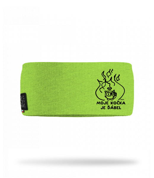 We make sustainable UAX clothing! - hand sewn in the Czech Republic uaxMen uaxAll productsHats and HeadbandsCOTTON SPORTS HEADBANDdesign 1326 - MOJE KOČKA JE ĎÁBELPARROT GREEN