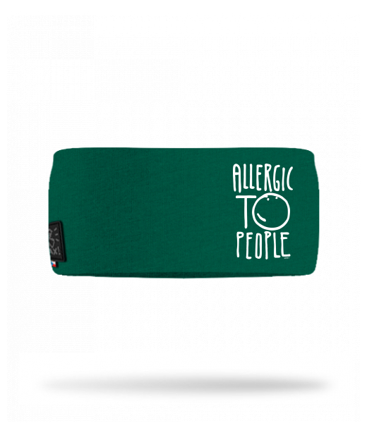 Cotton sports headband for man with design 1329 ALLERGIC TO PEOPLE in color UNIVERSITY GREEN