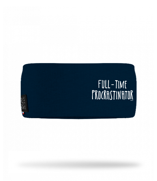 Cotton sports headband for man with design 1334 FULL-TIME PROCRASTINATOR in color DARK NAVY