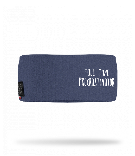 Cotton sports headband for man with design 1334 FULL-TIME PROCRASTINATOR in color JEANS