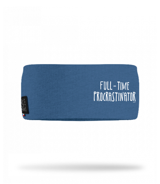 Cotton sports headband for man with design 1334 FULL-TIME PROCRASTINATOR in color MOONLIGHT BLUE
