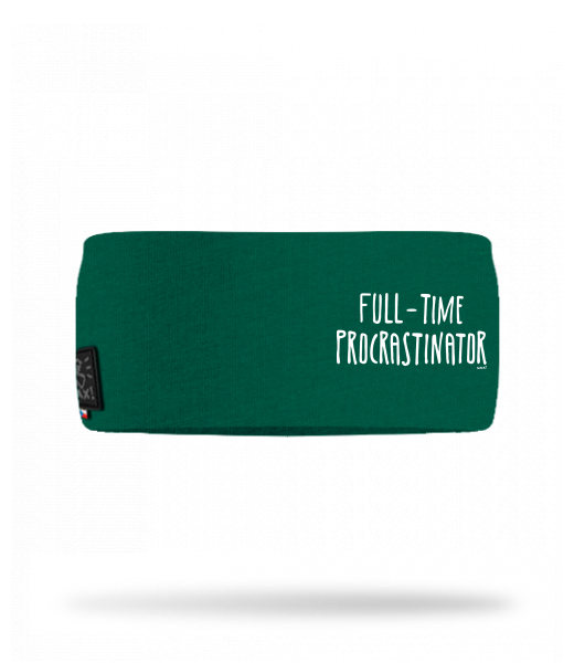Cotton sports headband for man with design 1334 FULL-TIME PROCRASTINATOR in color UNIVERSITY GREEN