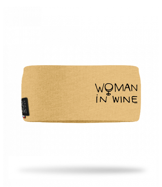 Cotton sports headband for man with design 1346 WOMAN IN WINE 1 in color MUSTARD