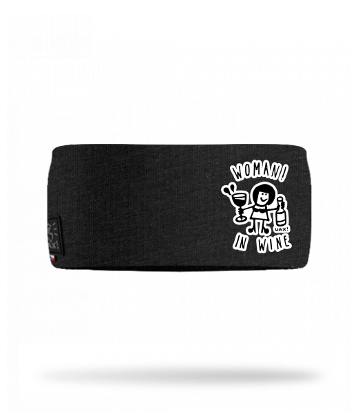 Cotton sports headband for man with design 1347 WOMAN IN WINE 2 in color BLACK